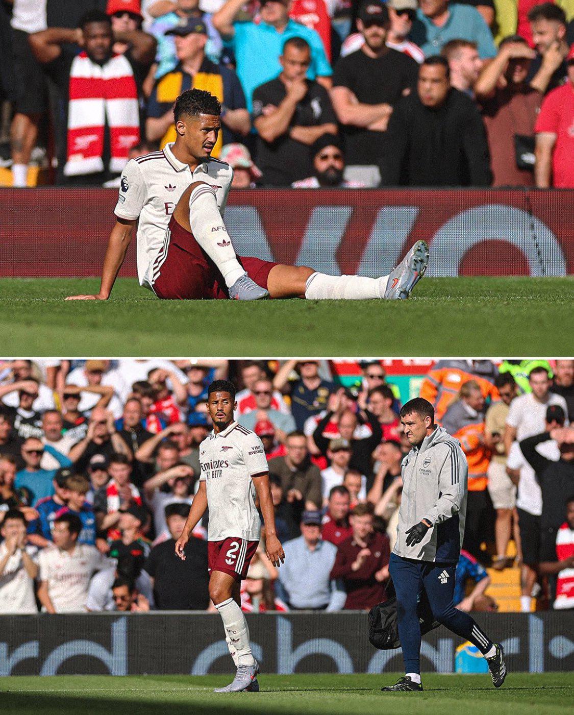 雷速体育9月1日讯 在英超联赛第3轮利物浦1-0险胜阿森纳的比赛,第5分钟阿森纳中后卫萨利巴在第5分钟因伤无法坚持被换下,赛后主教练阿尔特塔谈到了球员伤情,表示萨利巴在赛前热身就出现脚踝伤情,但他坚持上场,踢了几分钟就察觉不对劲,选择被换下场。